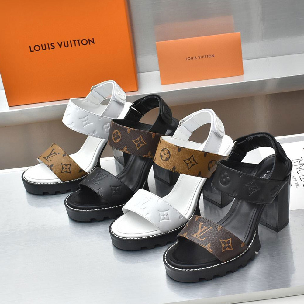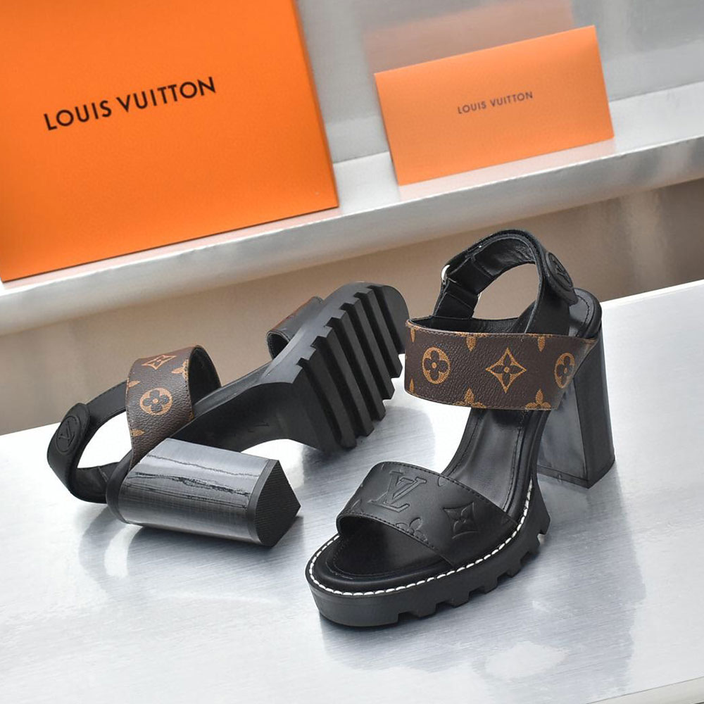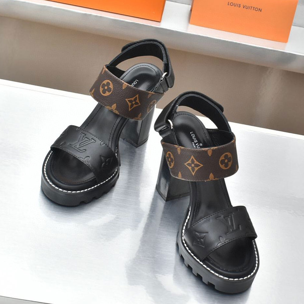 Louis Vuitton LV Leather Chunky Heel Velcro Slide Sandal
