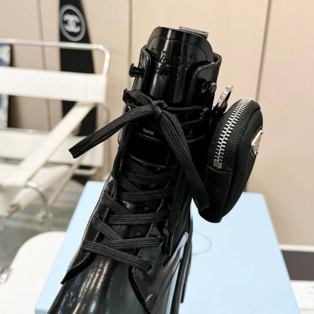 • Prada Monolith brushed leather and Re-Nylon boots with pouch
